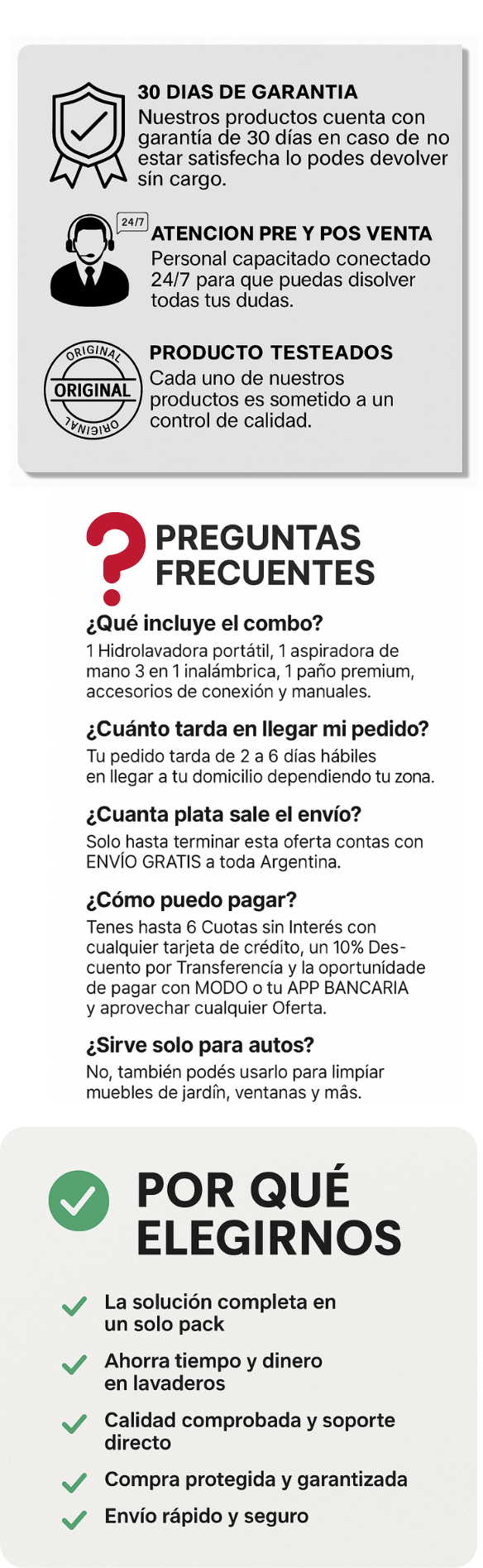 NOTA: Pensá que la cuota para tener un lavadero portátil de primera en tu casa cuesta lo mismo que un combo de McDonalds ($19.000), invertí con cabeza.